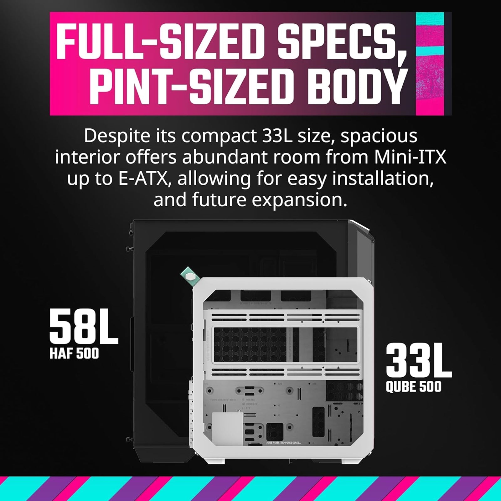 Cooler Master Qube 500 Flatpack, Macaron, Modular Mid-Tower w/ Tempered Glass Window, E-ATX/ATX/MicroATX/Mini-ITX
